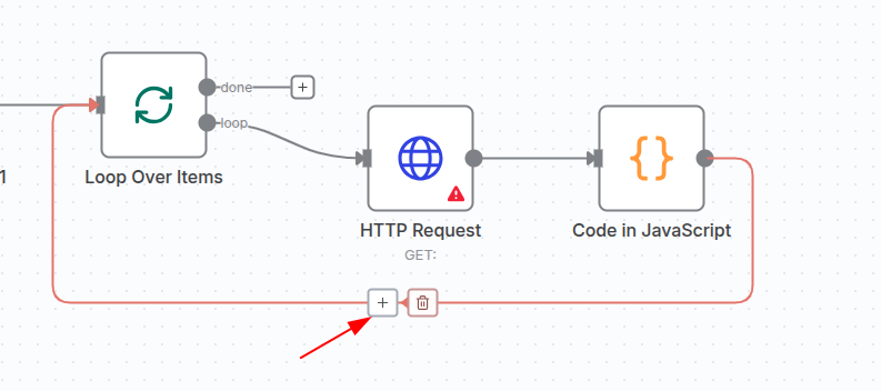 - Add a Code node next in your workflow. Just click the plus button and search “code”.